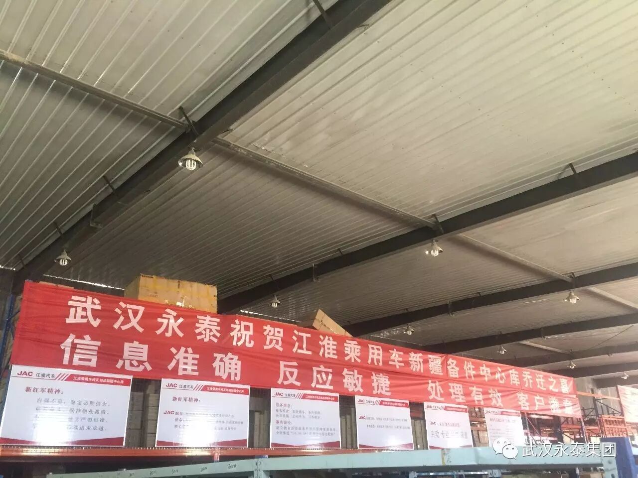感谢江淮乘用车公司领导及服务店领导对新疆备件中心库的指导和支持。新疆中心库距离总库远,区域内运输半径远,冬季气候恶劣,服务保障上存在客观的条件困难,但永泰人从来不谈客观,在备件满足保障上,运输及时率及服务满意度上,永泰人认真专研,潜心梳理,不断提升,获得服务店好评。因发展需要,决定对原基地仓库进行搬迁,在江淮公司指导下,在集团支持下,基地圆满实现搬迁。