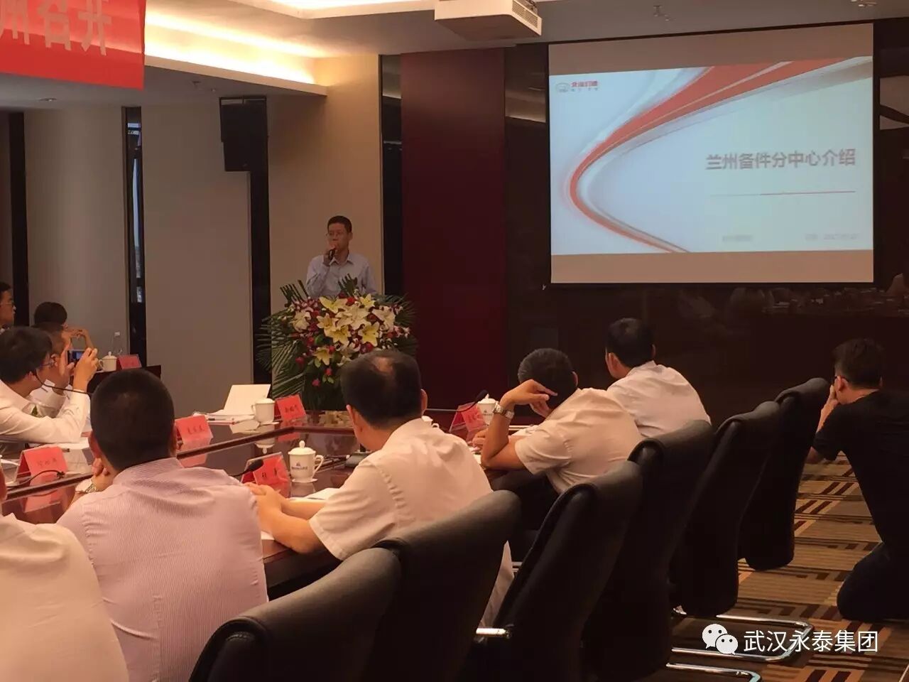武汉永泰集团廖总给各位领导介绍集团文化及兰州备件分中心的情况。