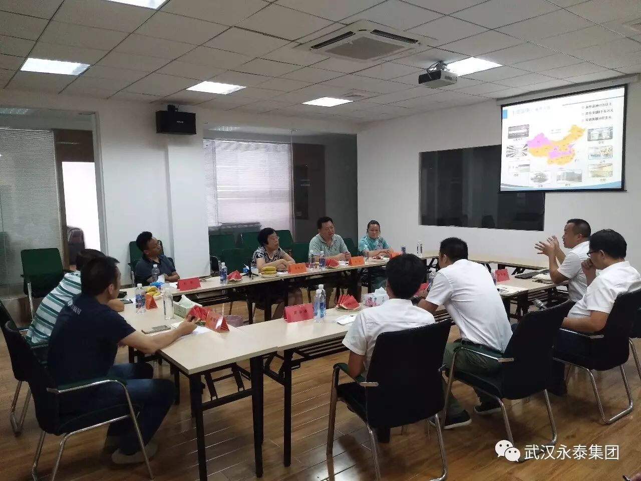 在陈丹秘书长的组织下,在集团举行了汇报交流会,苏部长代表集团致欢迎词,廖总代表公司向协会各位领导汇报中国汽车后市场转型升级的状况及武汉永泰集团的发展方向和下一步举措,希望在楚商协会的帮助下,武汉永泰集团进一步做大做强,在汽车服务后市场上扬帆远航,打造100亿,1000亿级的航母,汇报获得了协会领导的高度认可。程会长在聆听汇报后,给我们指点方向和策略,陈刚分会长为协会和永泰集团的合作展开思路分享交流。